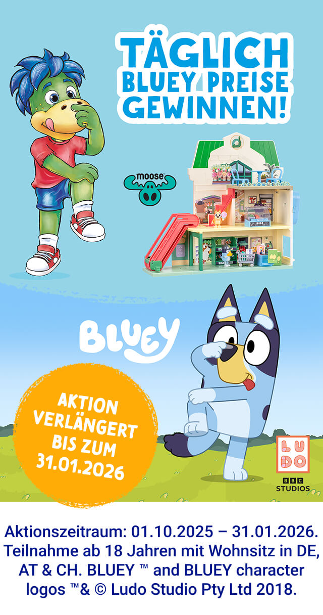 großartige Bluey Preise gewinnen und Bluey so auf ihren Abenteuern begleiten!